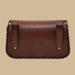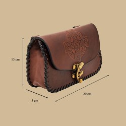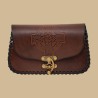 Brown leather pouch with embossed Celtic cross pattern.