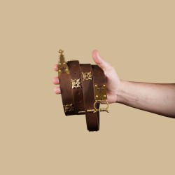 Medieval brown leather belt 14-15th centuryBrass pendant and buckle