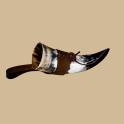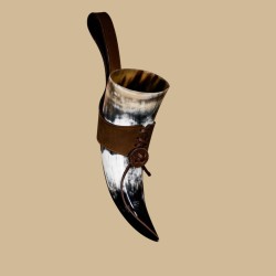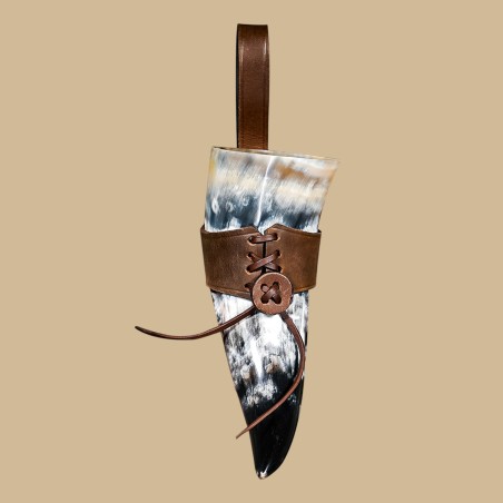 Corne à boire naturelle avec suspension en cuir marron